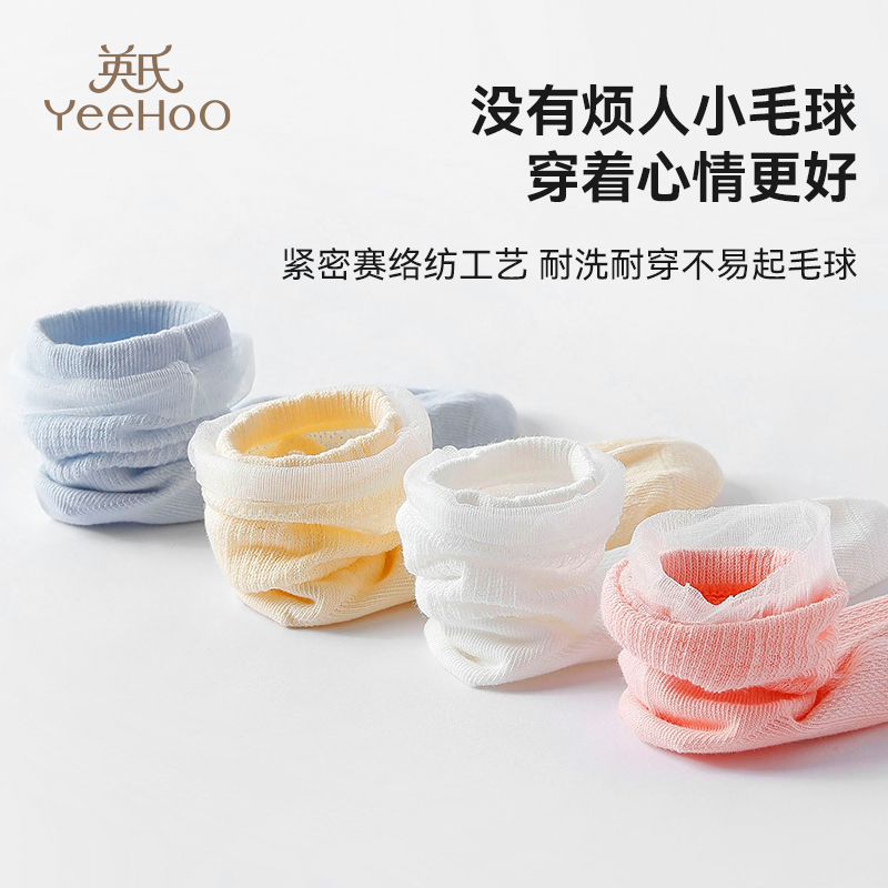 新款 英氏儿童袜子中大童小女孩冰丝花边网眼透气薄款 2025春夏季