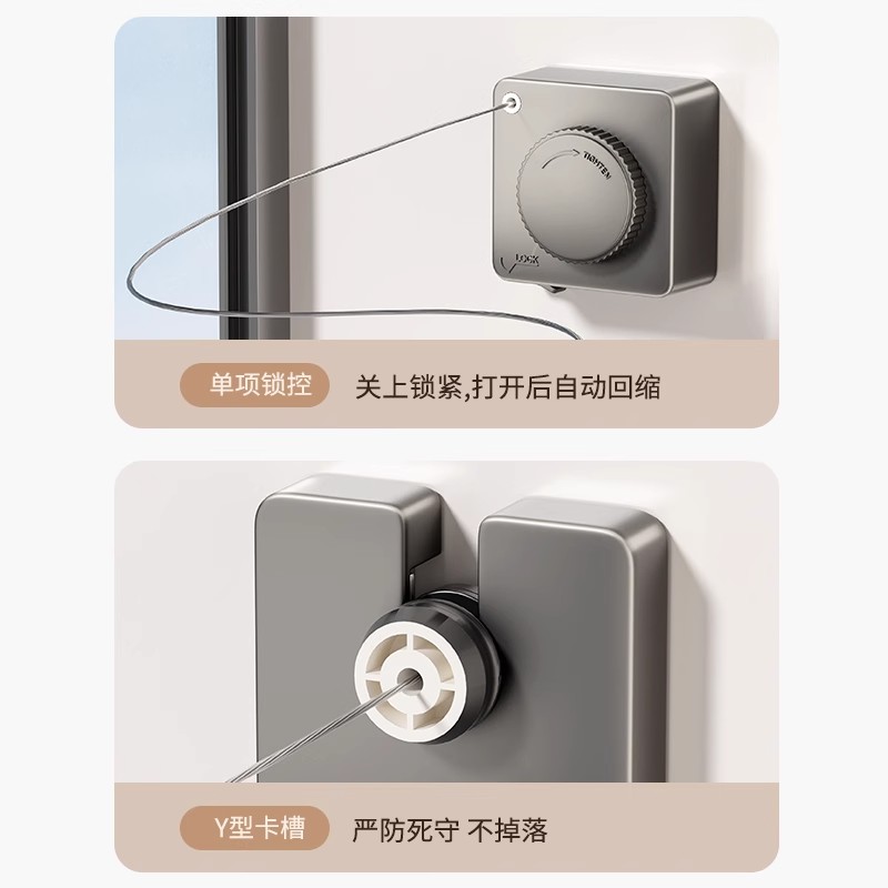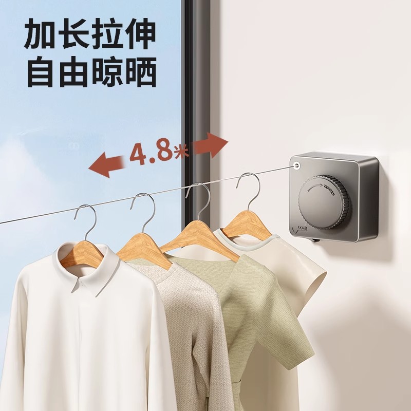 隐形晾衣绳收缩晾晒衣服免打孔伸缩阳台钢丝绳子卧室室外落地室内