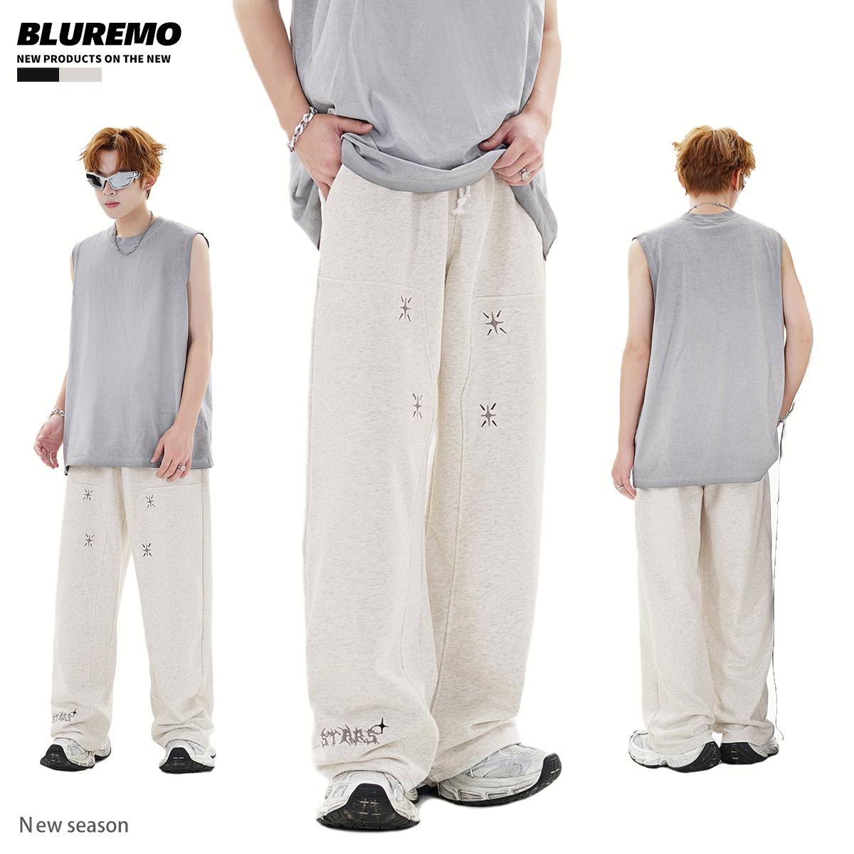 模糊情绪夏季 休闲长裤 新品 街潮仿钉扣刺绣百搭个性 潮 美式 BLUREMO