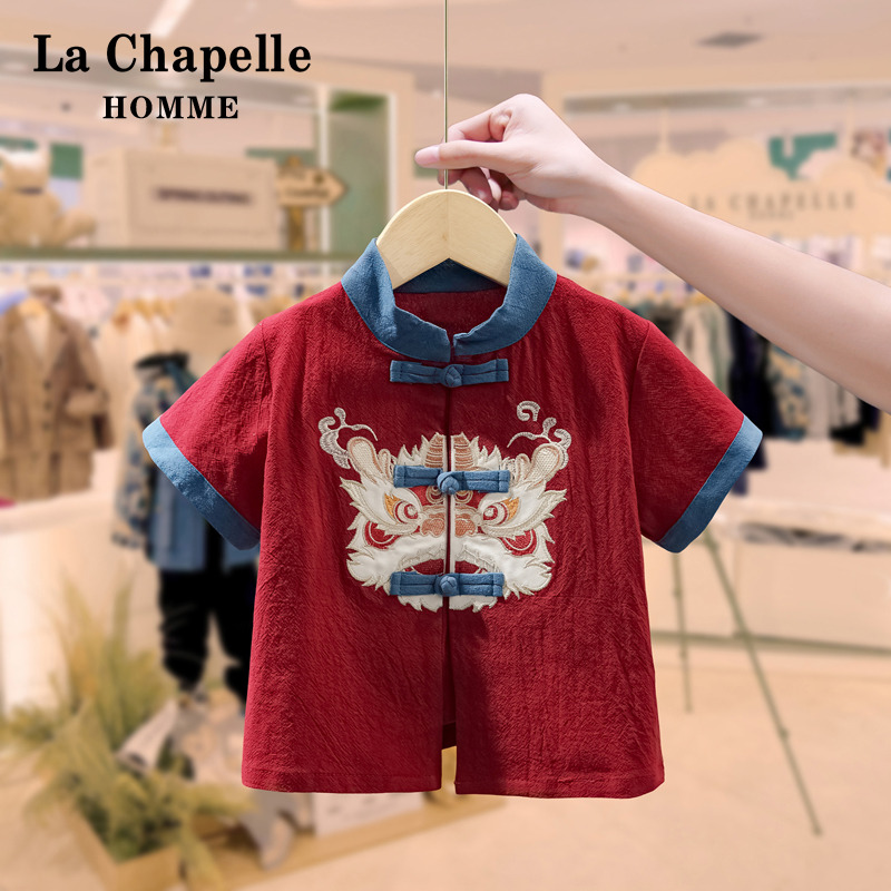国风唐装 拉夏贝尔男童汉服套装 儿童宝宝新中式 2025新款 两件套 夏季