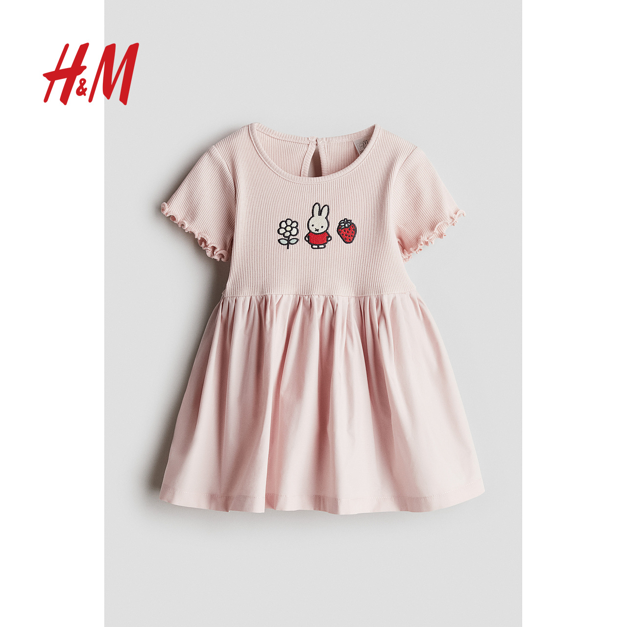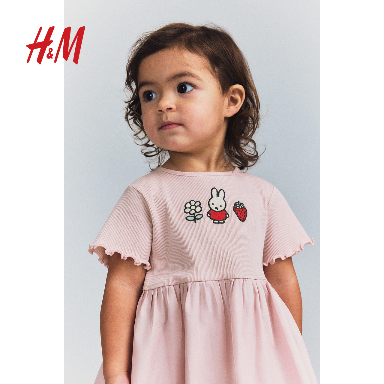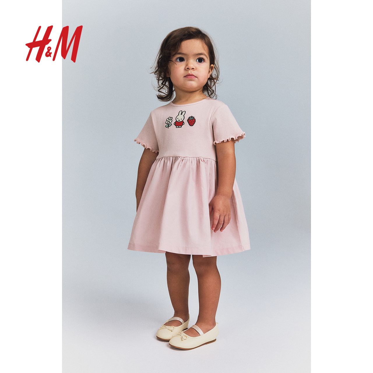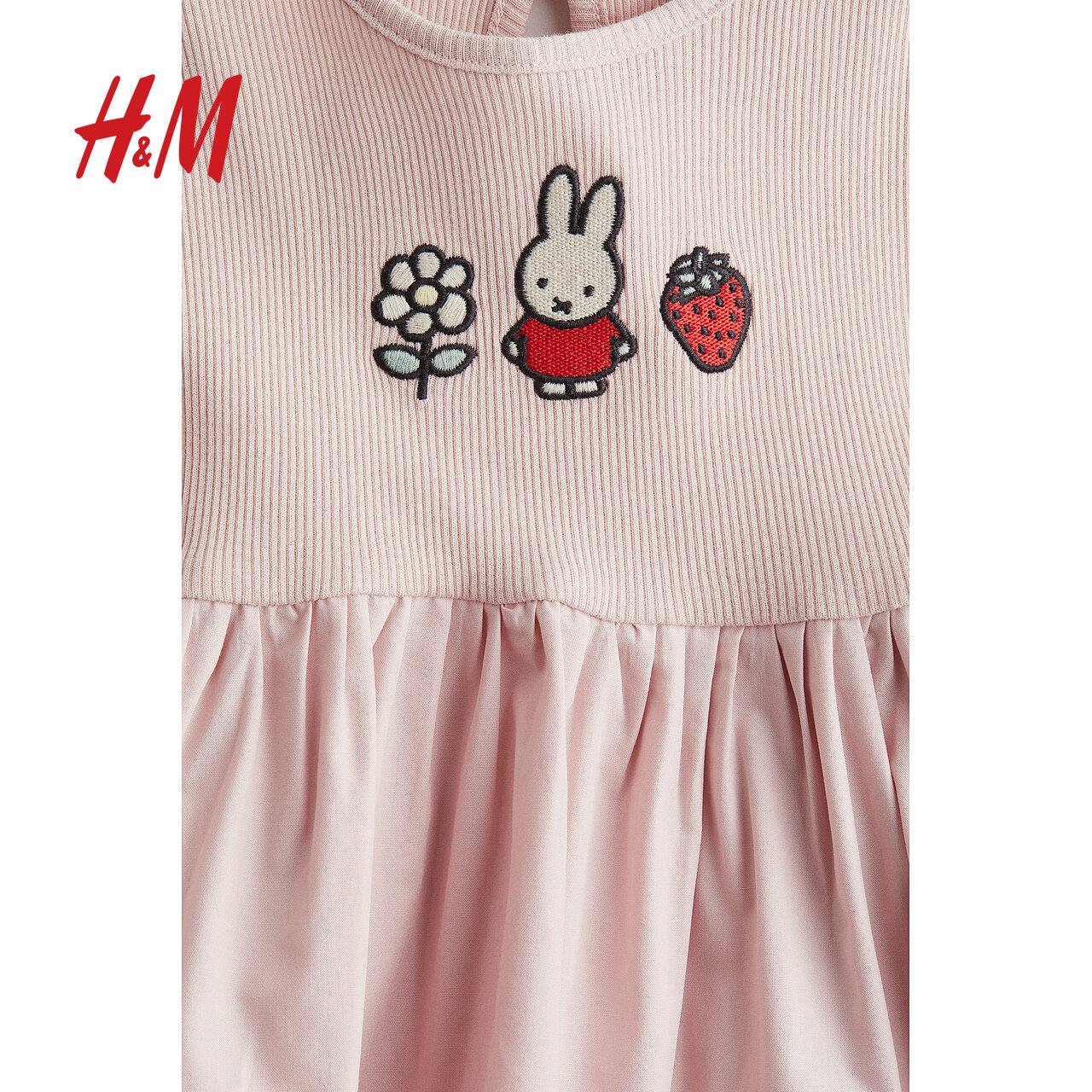 新款 女婴连衣裙25年秋季 HM童装 棉质刺绣印花裙1283935 米菲兔