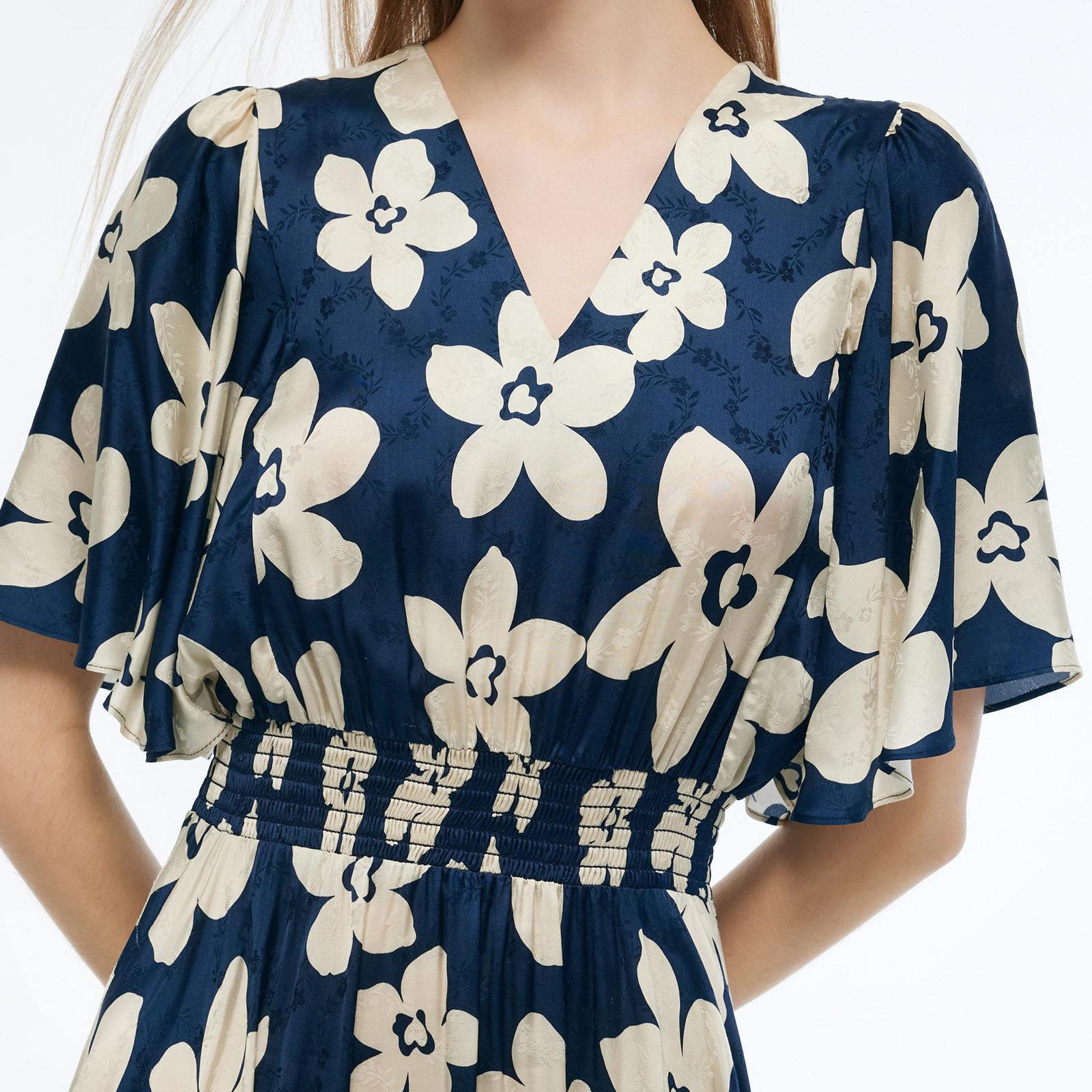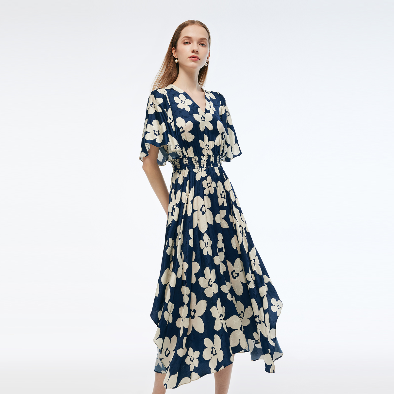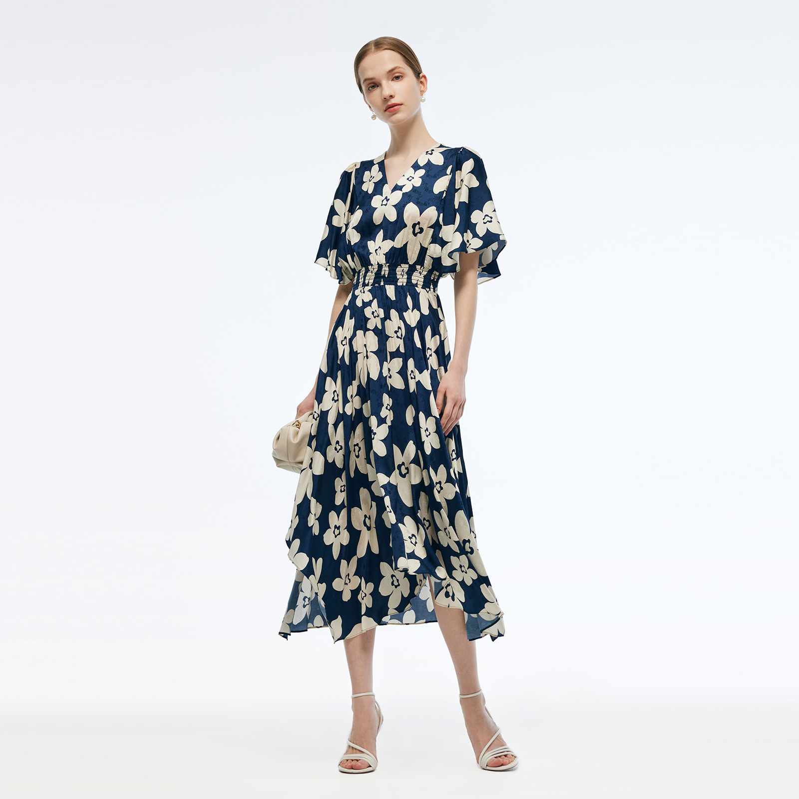 歌莉娅连衣裙女夏2025新款 裙子1E6R4K880 V领收腰荷叶袖
