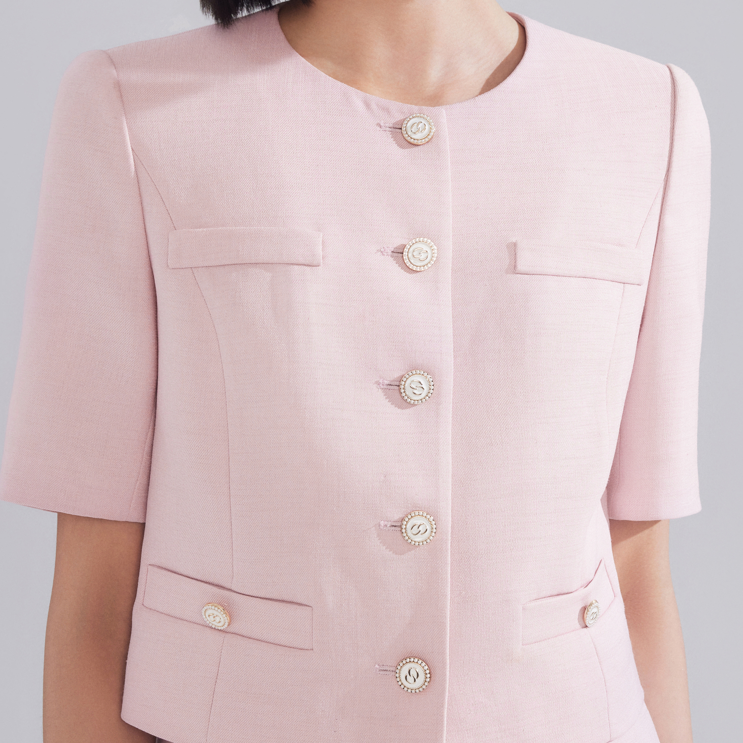 通勤外套 女短袖 莱茵商场同款 小香风圆领气质短截粉色春夏新款