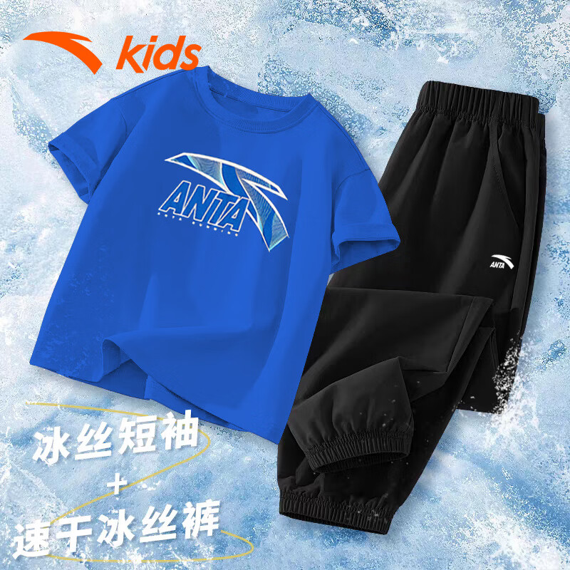 夏季 短裤 透气冰丝t恤训练上衣 男速干衣跑步健身短袖 安踏运动套装
