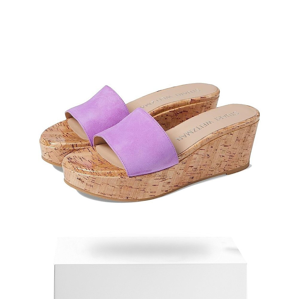 Stuart 美国8.5码 Weitzman夏季 女式 丁香色皮革坡跟KHD82 凉鞋 自营