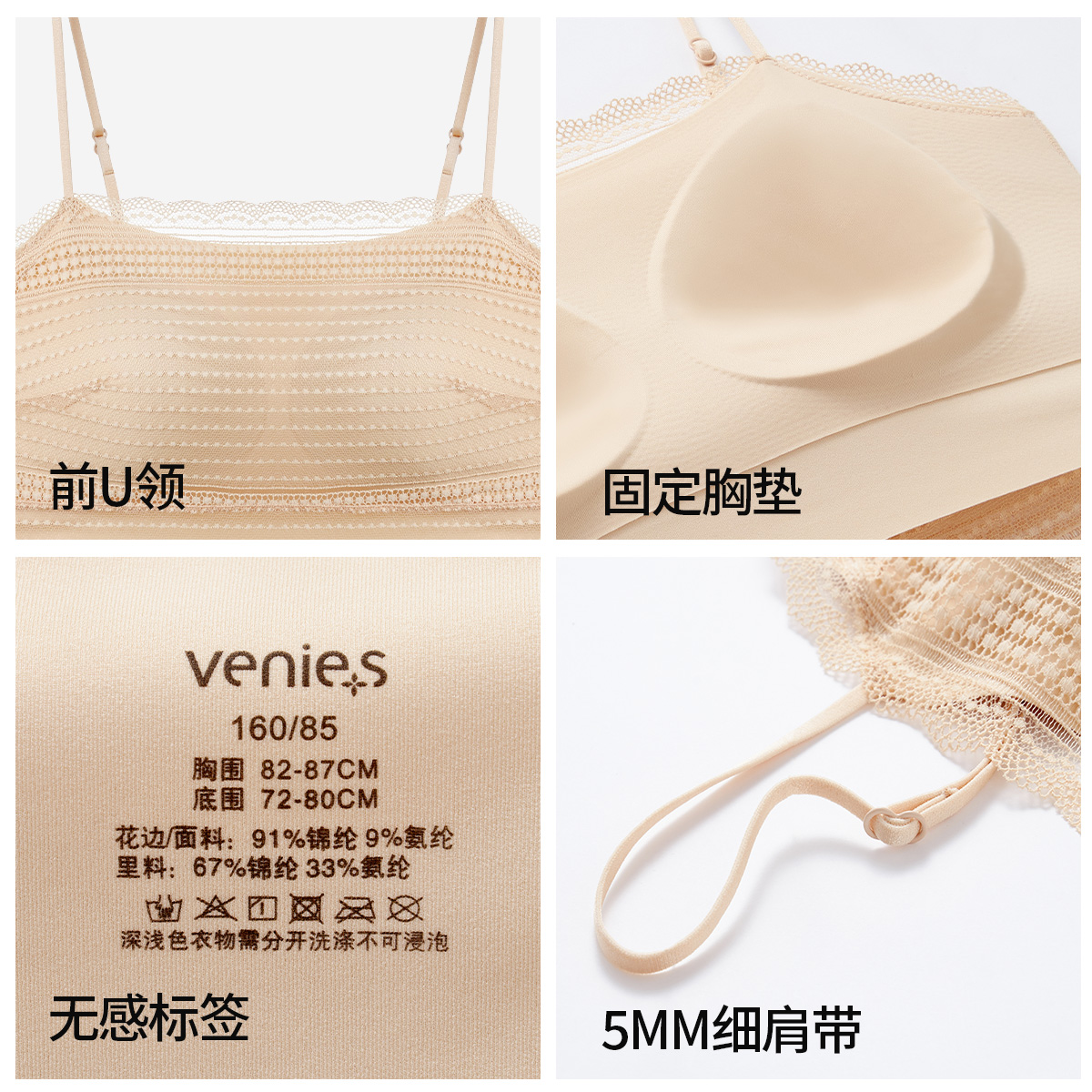 蕉树吊带内搭外穿带胸垫薄款 小胸聚拢裸感固定杯防下垂防滑抹胸