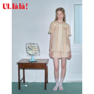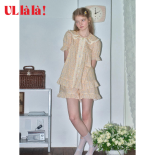 女睡衣夏甜美 短裤 Ullala韩国乌拉拉进口家居服睡衣套装 娃娃领短袖