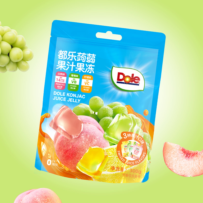 Dole 都乐蒟蒻果汁果冻300g白桃青提柠檬多口味儿童休闲零食布丁