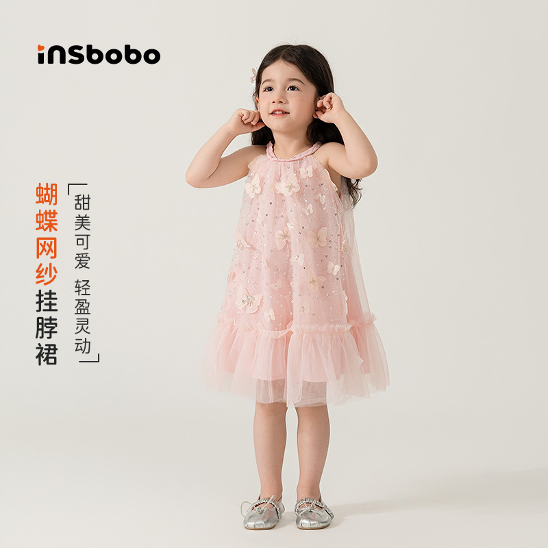 INSbobo女童连衣裙夏季 儿童裙子周岁女宝礼服女孩公主裙纱裙高级