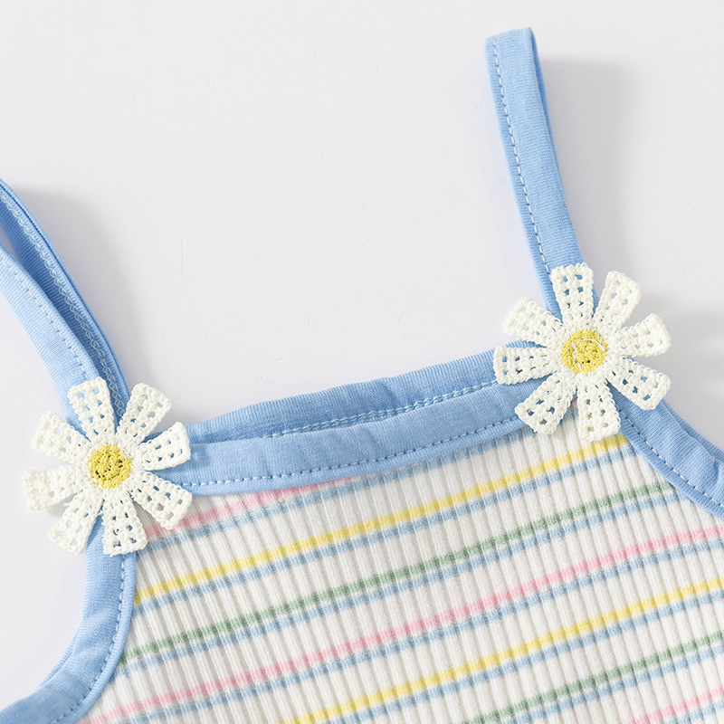 班喜迪婴儿吊带包屁衣夏季 衣服连体衣公主风百天条纹女宝宝薄款