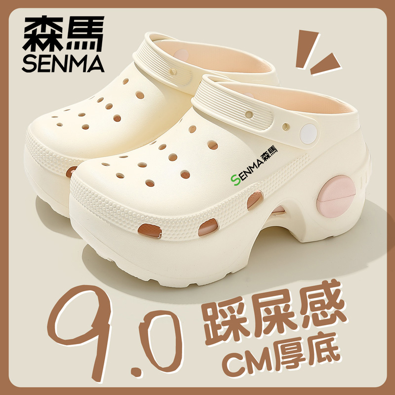 夏季 户外防滑沙滩鞋 女款 耐磨踩屎感凉拖鞋 2025新款 森马增高洞洞鞋
