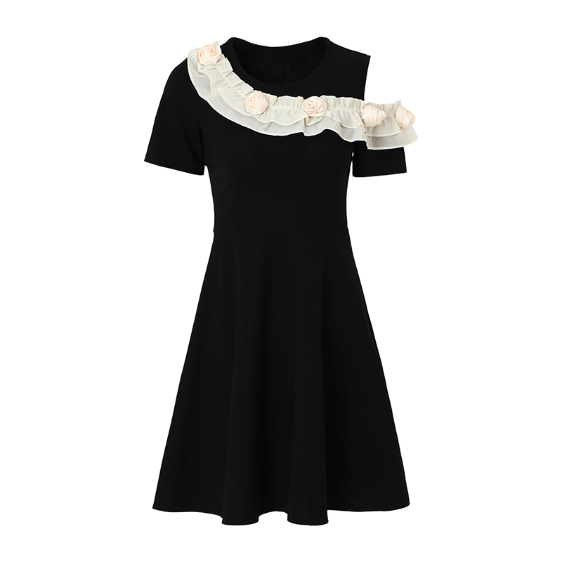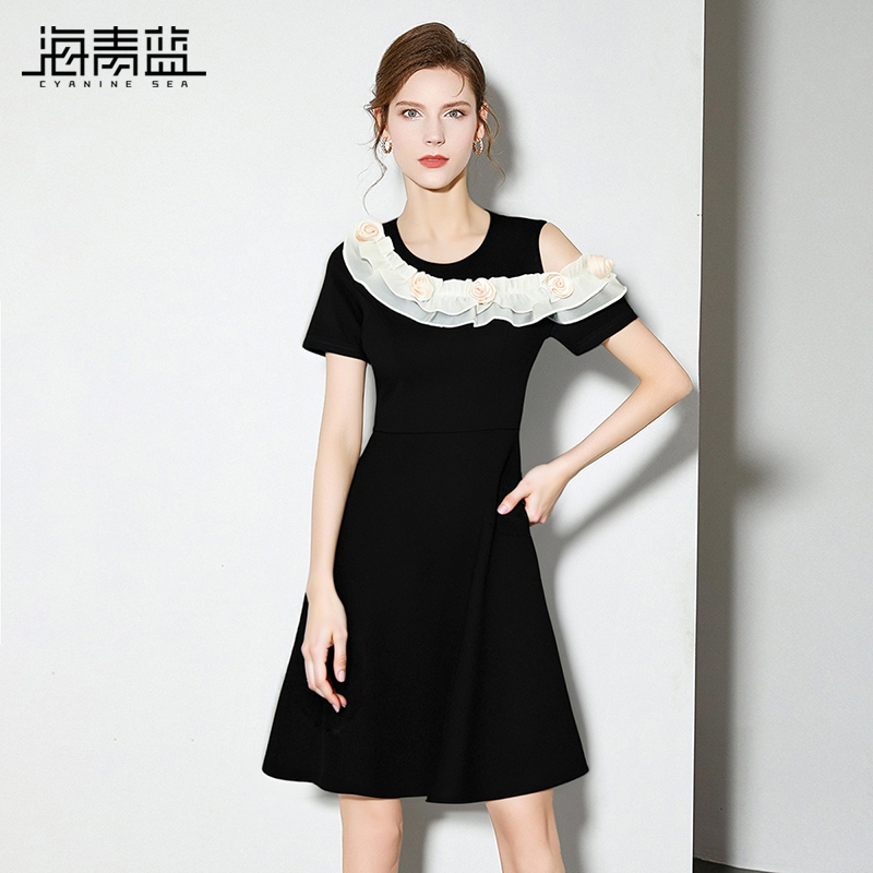 歌莉娅丝绒连衣裙女秋冬厅里厅气连身裙正式 场合小黑裙1BNR4K360