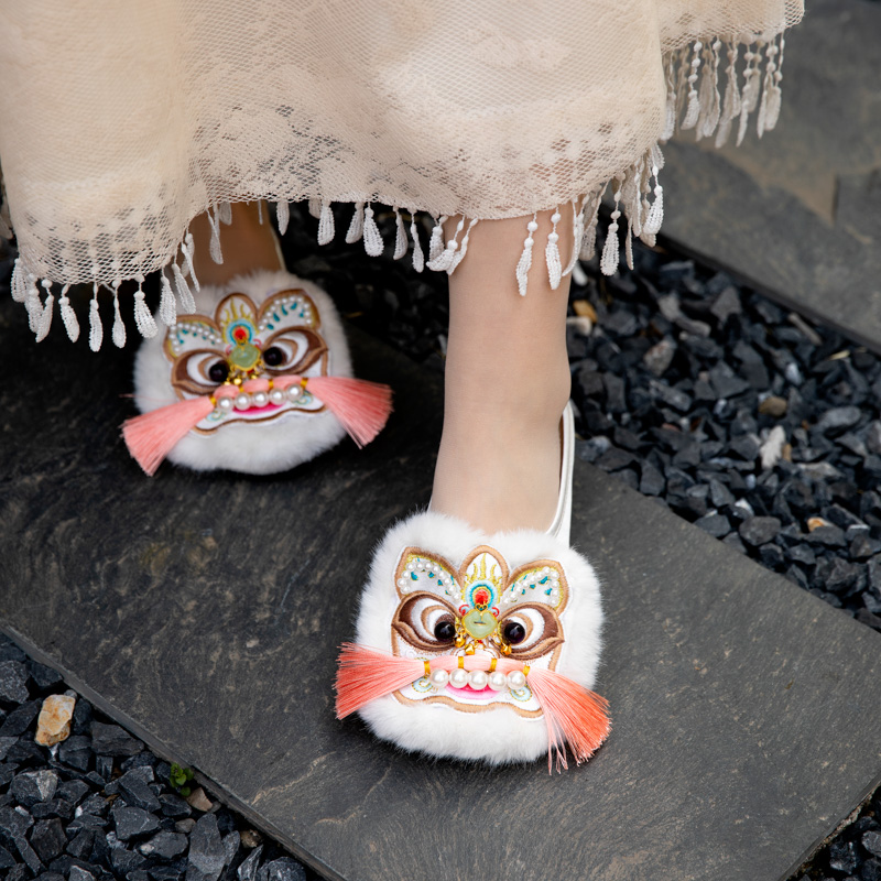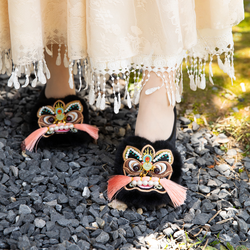 平底刺绣成人拖鞋 手工复古虎头鞋 女民族风包头拖大人牛筋底半拖鞋