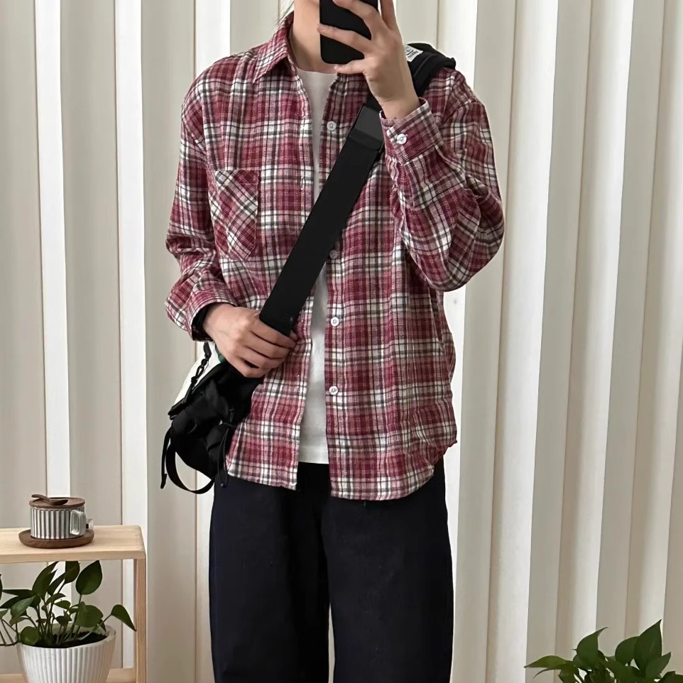 高级感磨毛格子衬衫 超好看休闲欧货衬衣上衣 加厚外套女2025秋新款