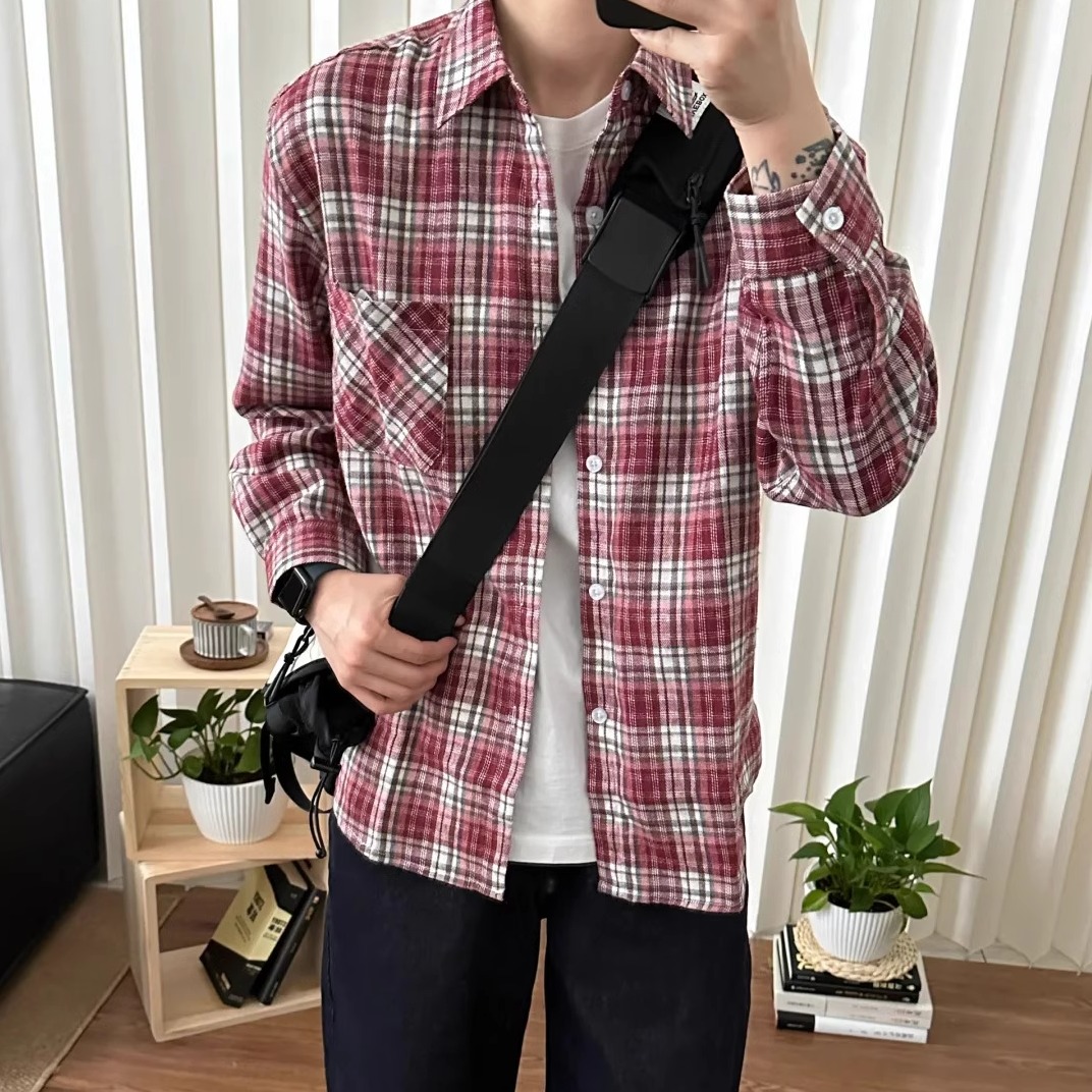 复古春秋衬衣外套休闲磨毛格子衬衫 美式 男 迈克罗德 MAD官方