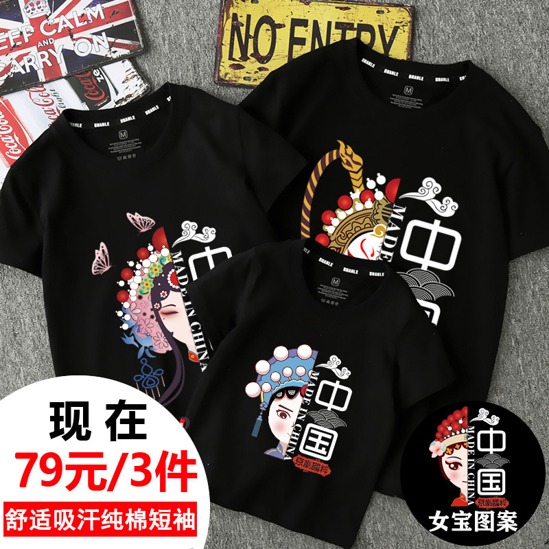一家三口四口装 母子装 2025新款 T恤母女装 全家福国潮 潮夏装 亲子装