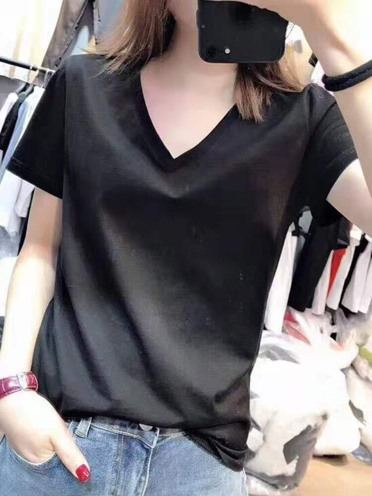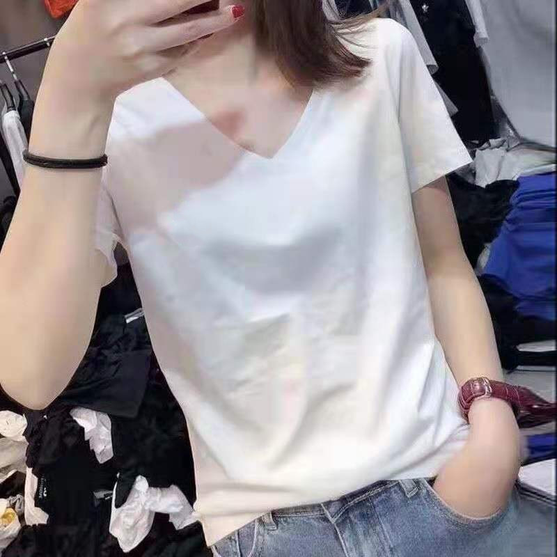韩版 2025早春新款 宽松百搭设计感上衣服 白色V领纯棉T恤女短袖 夏季