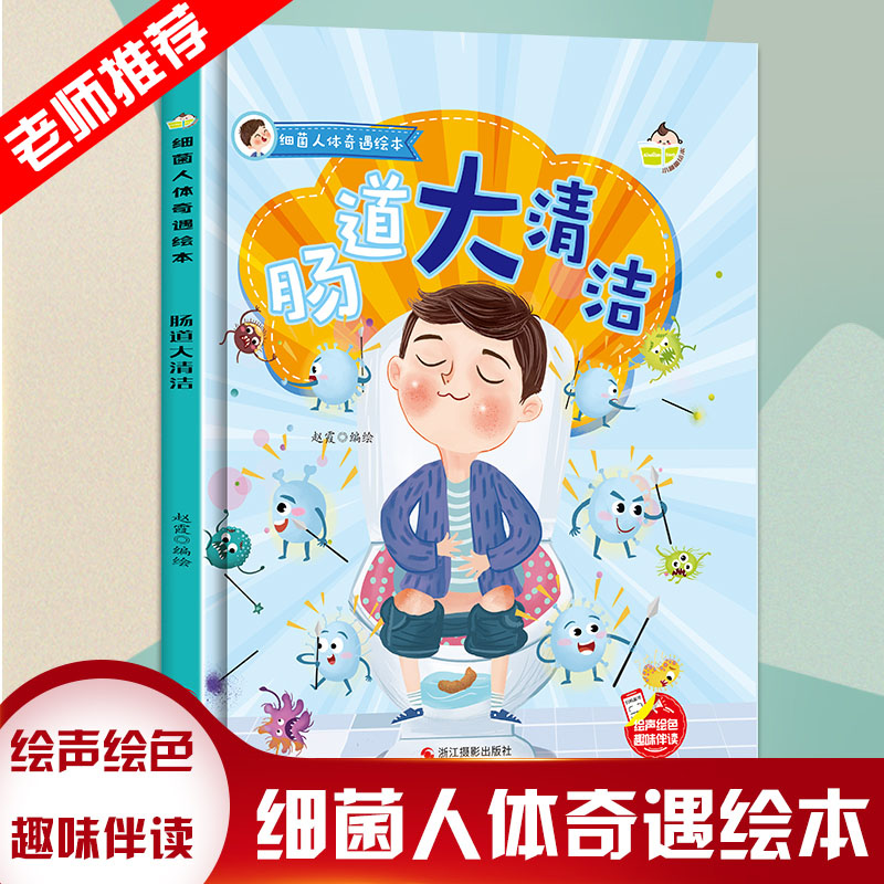 书籍小班中班大班3 肠道大清洁幼儿园正版 6岁亲子共读培养健康习惯儿童早教认知睡前硬壳硬皮硬面故事书 硬壳细菌人体奇遇绘本 精装
