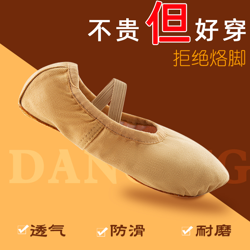 软底舞蹈鞋 夏女童中国舞驼色跳舞专用成人 女猫爪儿童芭蕾舞练功鞋