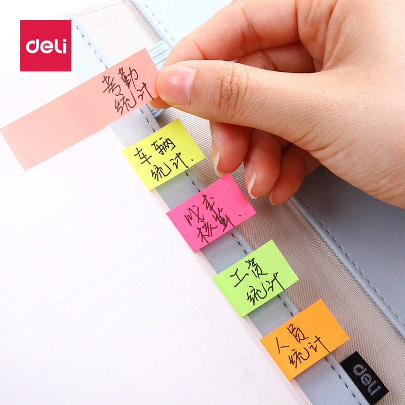 得力迷你长条便利贴韩国ins可爱便签书签贴纸荧光条形学生用创意彩色小条分类索引粘性强手写自粘小号长方形