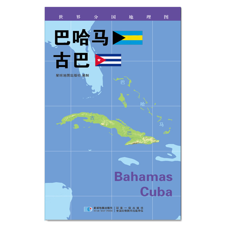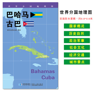 世界分国地理图 折叠袋装 人文历史 约84 星球地图出版 古巴 双面覆膜防水 巴哈马 社 地理概况 60cm 城市景点