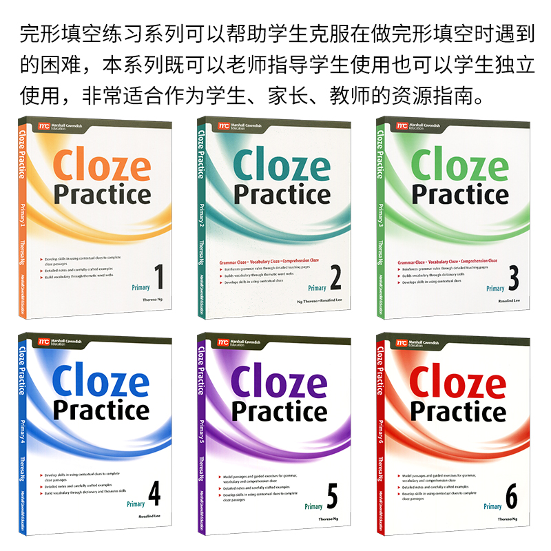 Practice Cloze 123456 原版 小学词汇语法上下文理解完型填空练习辩证思维培养 进口新加坡马歇尔卡文迪许出版 12岁完形填空练习