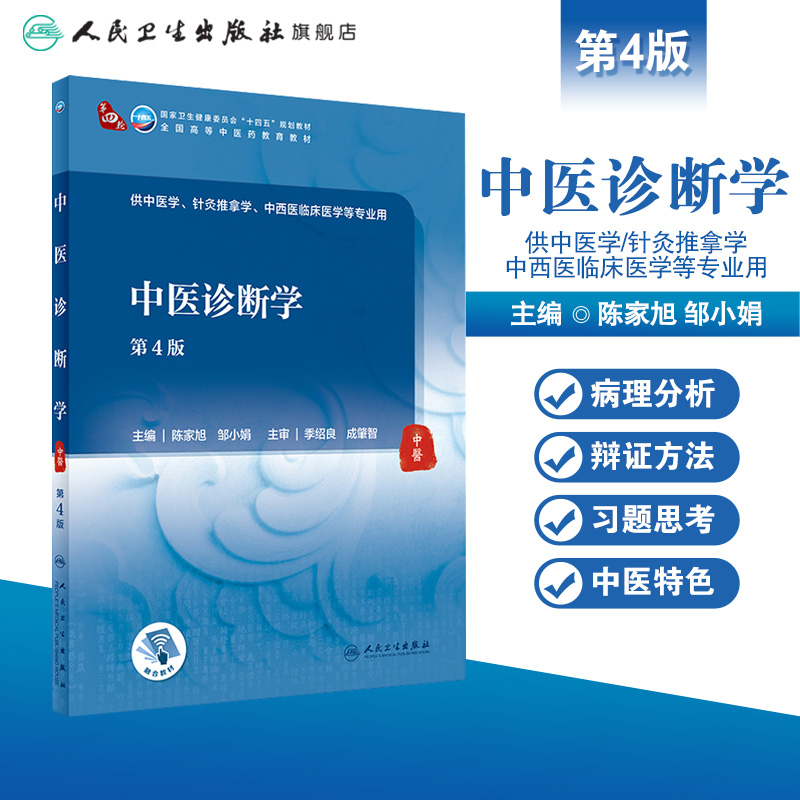 中医诊断学第四4版 社医学知识自学入门教材书 人卫内科方剂中药针灸养生内外妇儿科学推拿骨伤经络腧穴中西医临床本科人民卫生出版