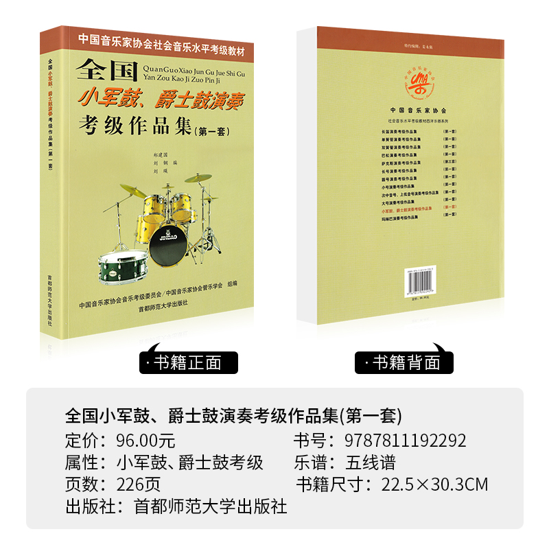 中国音乐家协会社会音乐水平考级教材 郑建国 刘钢 正版 首都师范大学出版 第一套 刘瑛编 社 全国小军鼓爵士鼓演奏考级作品集