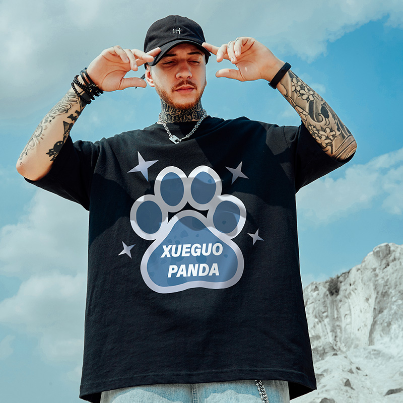中大童插肩袖 新款 上衣 T恤儿童熊猫印花2025春秋季 多多家男童长袖