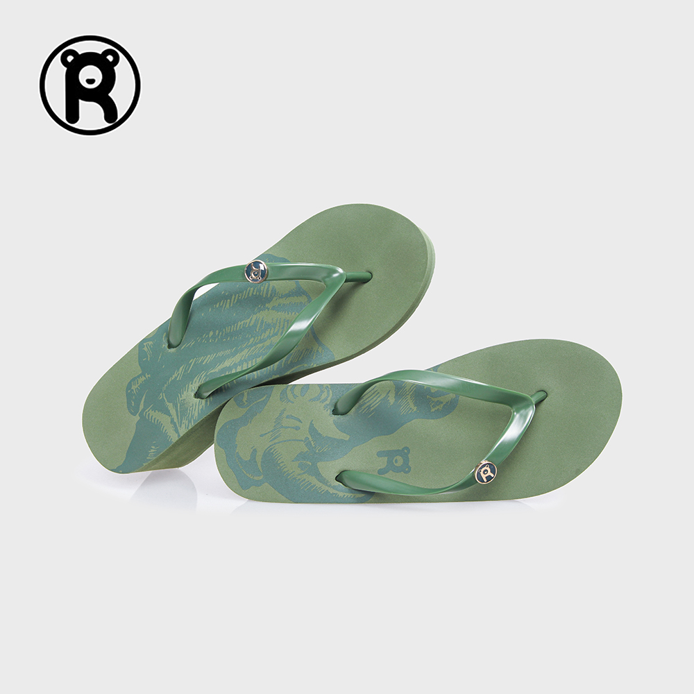 拖鞋 洛克熊人字拖女厚底夹脚海边外穿坡跟凉拖沙滩时尚 增高女款