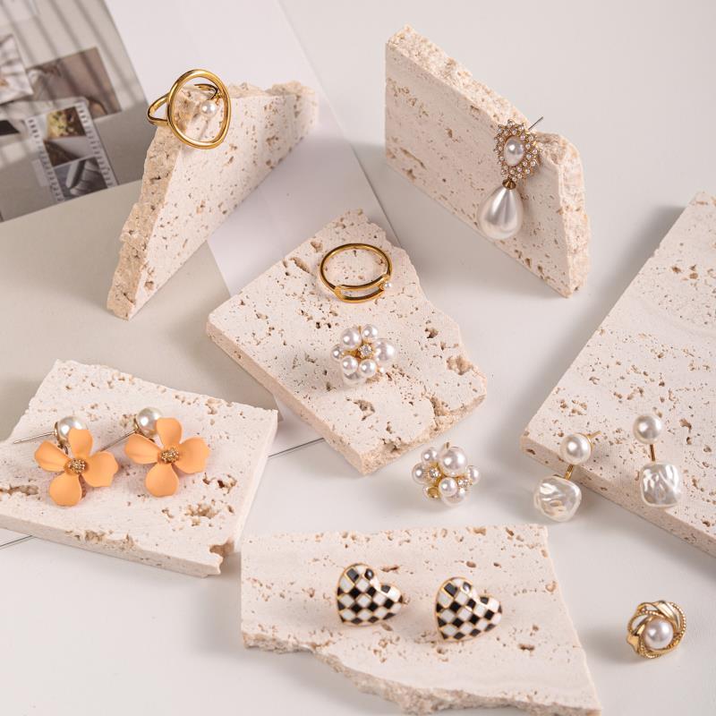 ins风饰品珠宝拍照道具文艺大理石冷淡侘寂风石头砖块摆件摄影网红洞洞石岩石化妆品首饰商业摆拍背景板