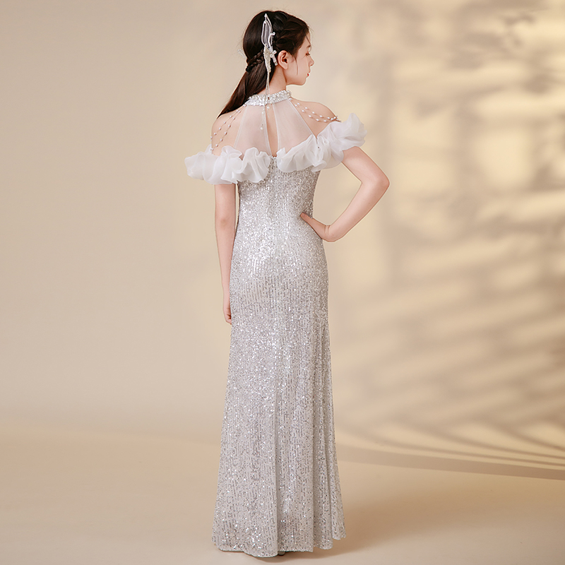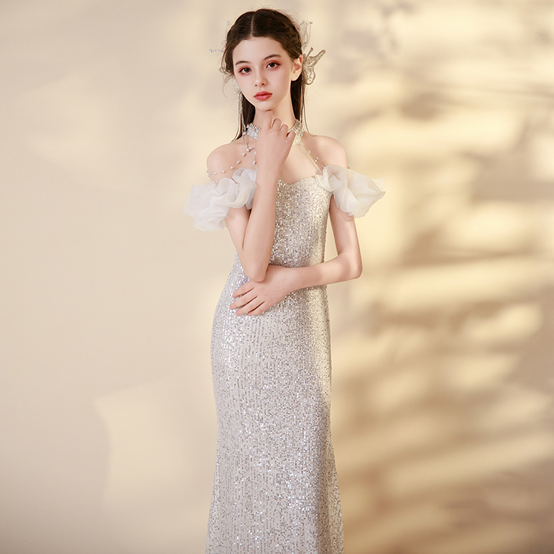 高端女童晚礼服修身 鱼尾亮片高级感公主裙小主持人儿童演出连衣裙