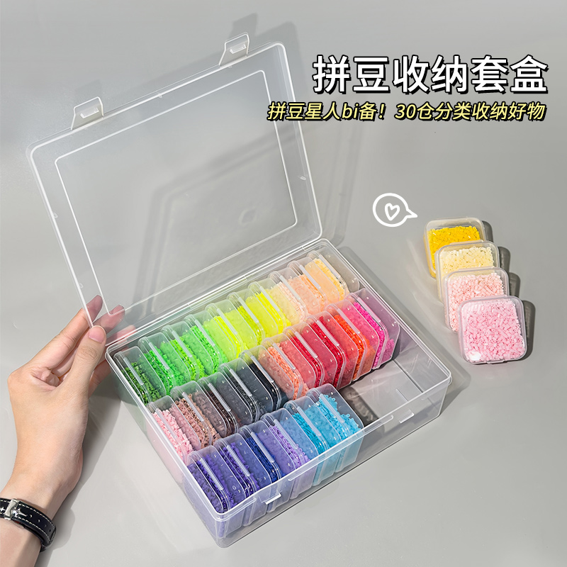拼豆收纳盒子透明整理钻石美甲散珠专用分隔大容量米珠配件分装 盒