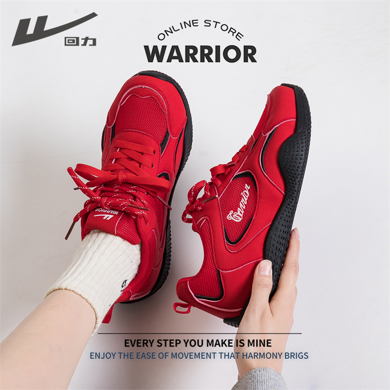 百搭网面红色运动板鞋 回力德训鞋 厚底休闲赛车鞋 2025年夏新款 女款