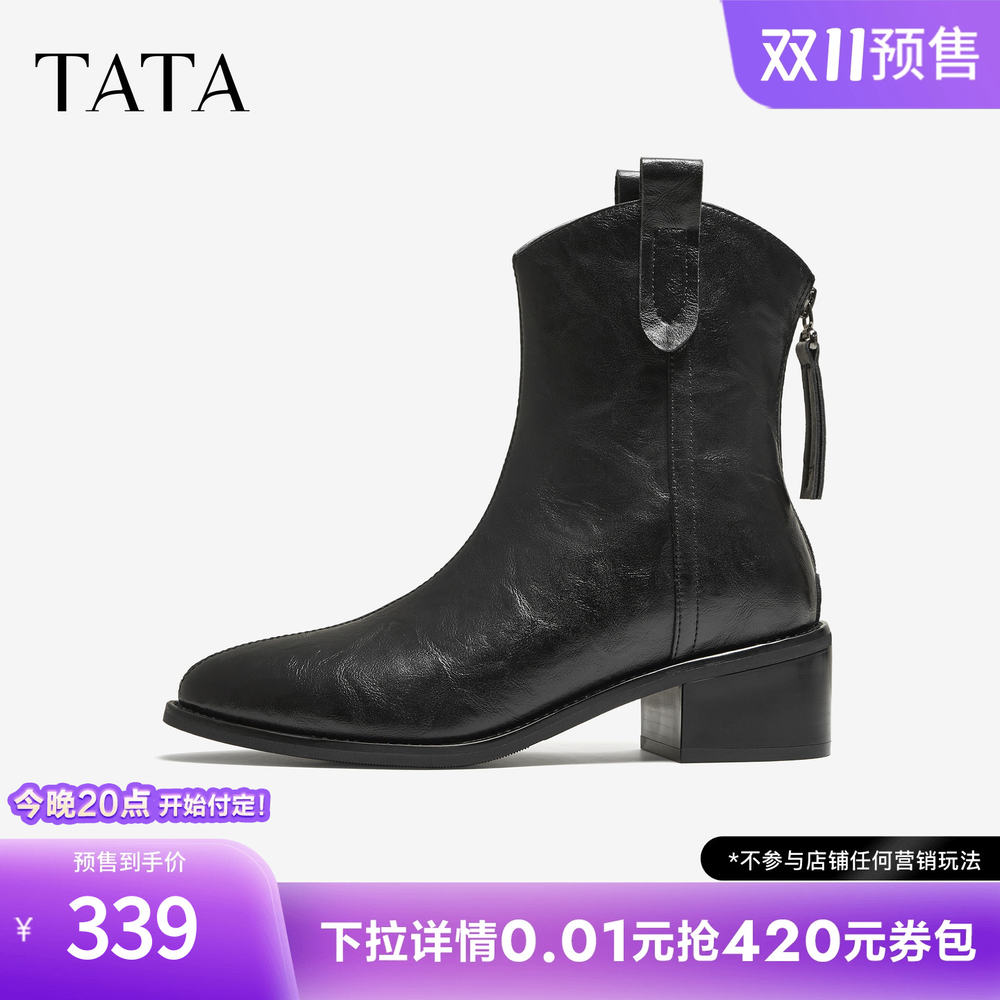 靴子冬时装 TATA他她女鞋 靴西部靴弹力短靴UVF01DZ5 双11预售