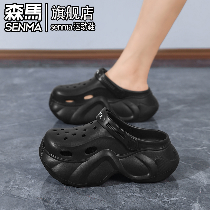 厚底增高踩屎感沙滩凉鞋 森马洞洞鞋 外穿防滑防臭包头拖鞋 夏季 女款