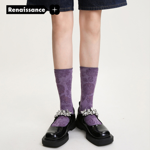 文艺复兴袜子女25春秋新款 小众棉袜 复古风原创设计潮中长筒袜秋季