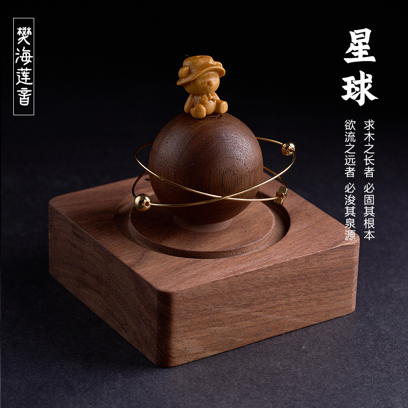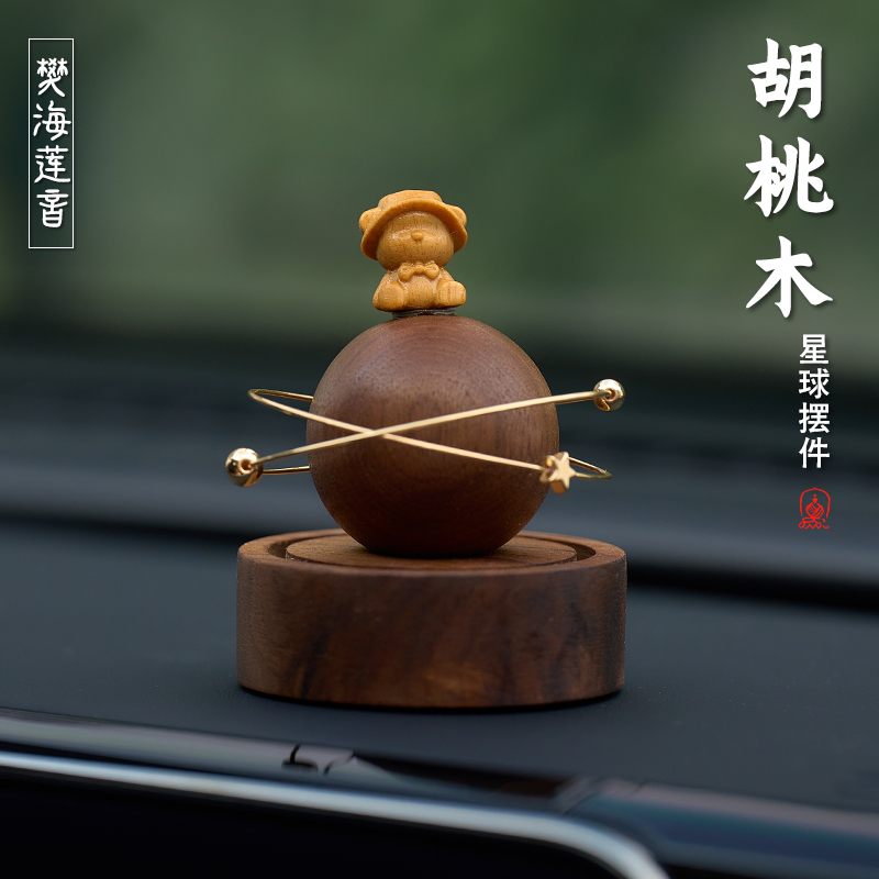 胡桃木星球小熊车载摆件汽车香水扩香器车内装 饰品高端2025新款