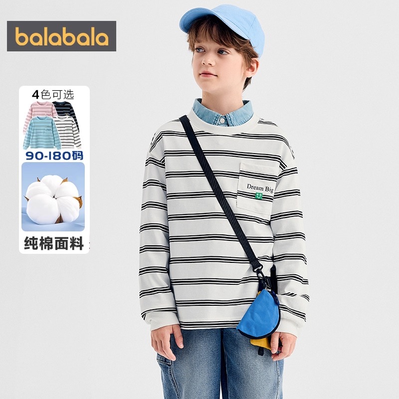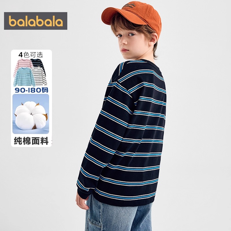 t恤男女童2025秋新款 巴拉巴拉儿童长袖 条纹纯棉上衣 商场同款