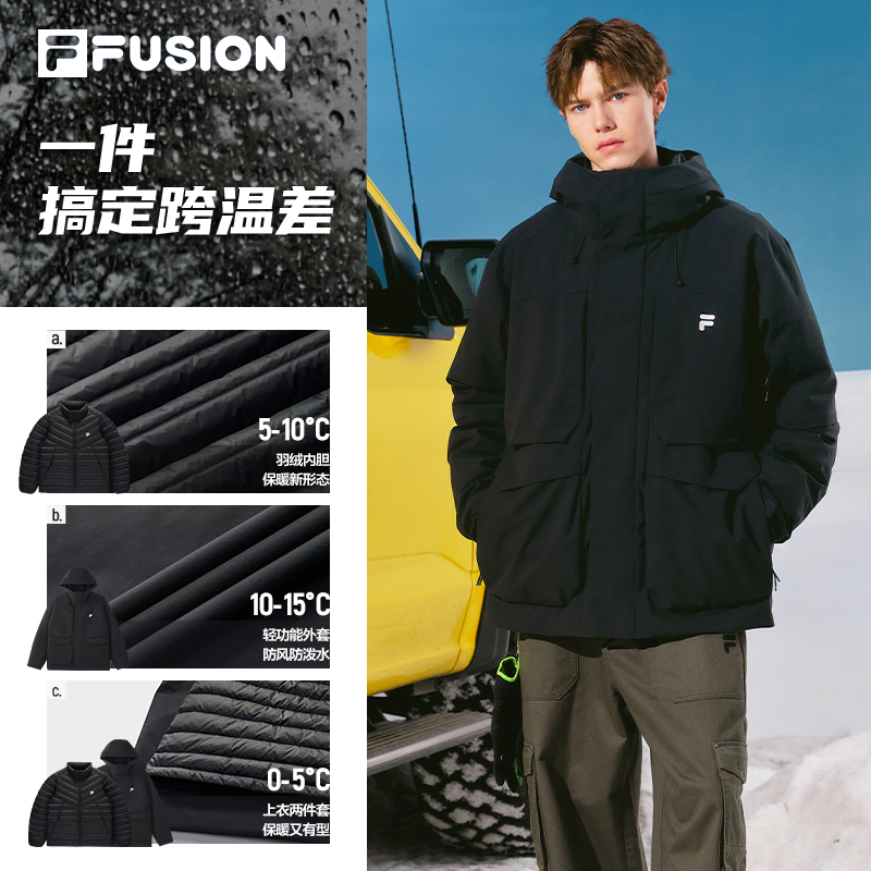 运动保暖防风男户外 斐乐情侣厚外套女2025冬新款 FILA RGB羽绒服