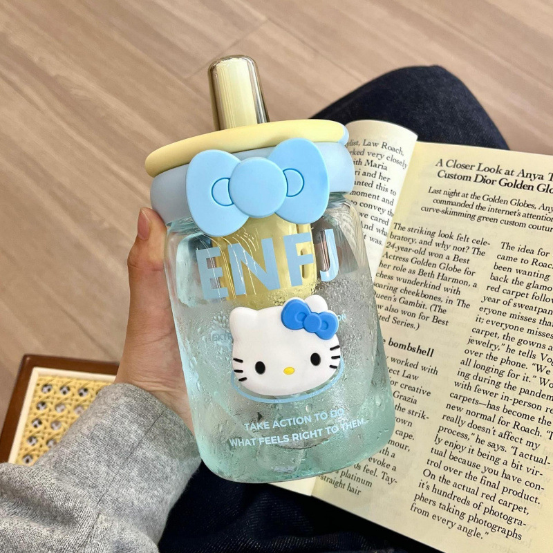 夏季 果茶茶水分离吸管杯可爱吸管玻璃杯户外便携手提环水杯T