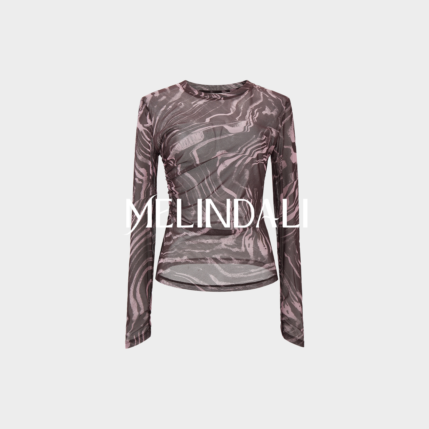 斑马印花网纱T长袖 MELINDA 英国花版 玫瑰斑马 上衣皮肤衣