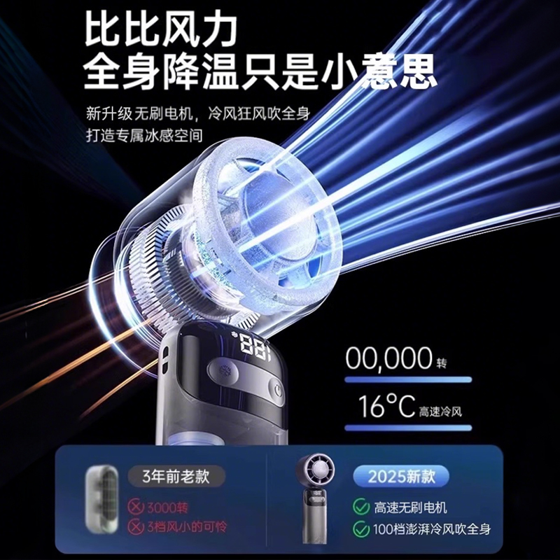 超高速强力制冷手持风扇桌面挂脖静音充电学生迷你随身户外冰敷降温神器usb小型风扇2025新款 已接入米家APP