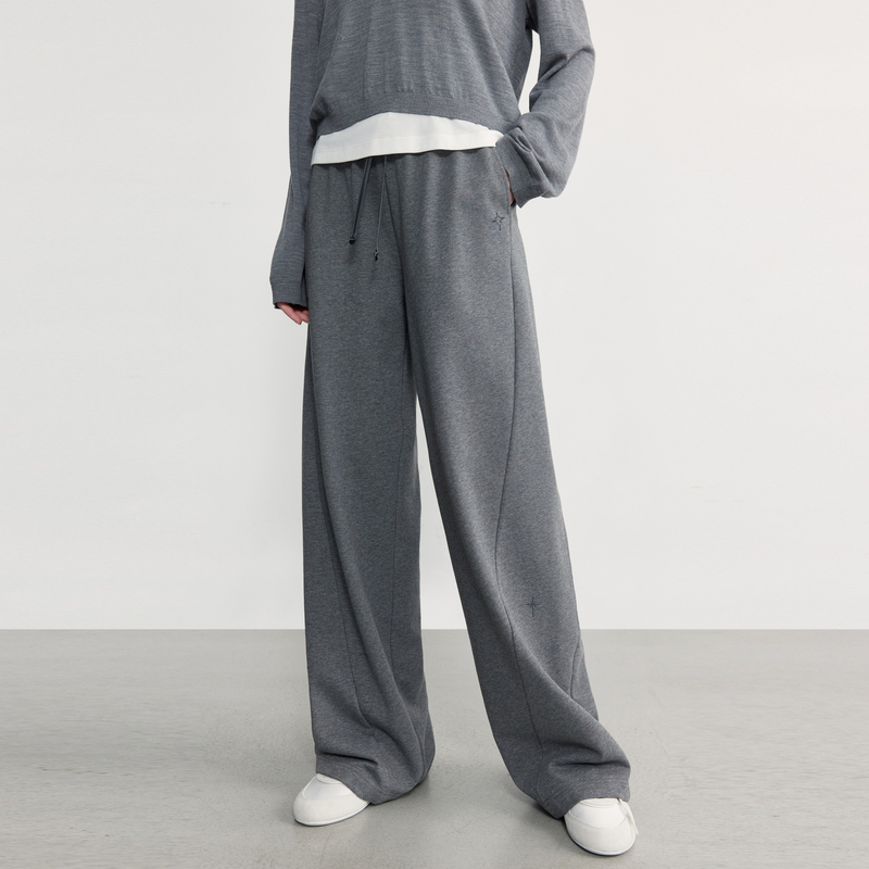 简约垂感休闲裤 TI尤缇2025秋季 时尚 女 灰色运动风直筒裤 专柜新款