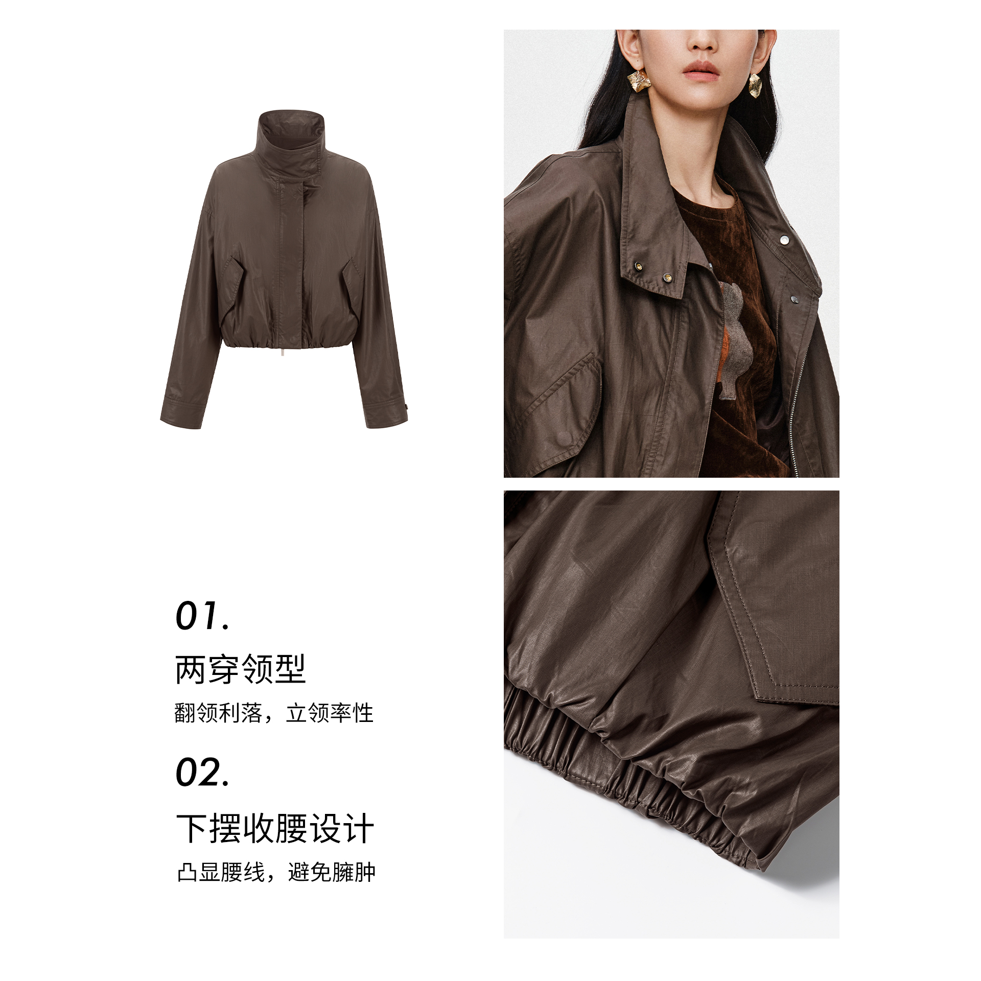 新款 立领短外套女2025年秋装 衣香丽影修身 防水轻量夹克 100%棉