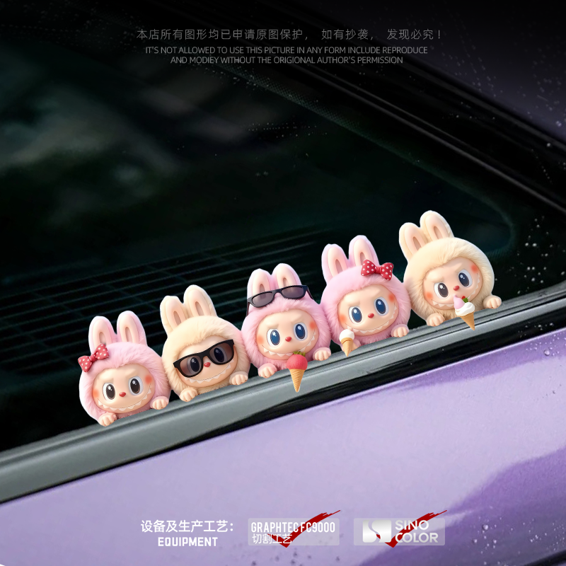 适用于汽车车身趴车窗卡通毛绒玩偶装 饰贴画 饰贴车身玻璃划痕装
