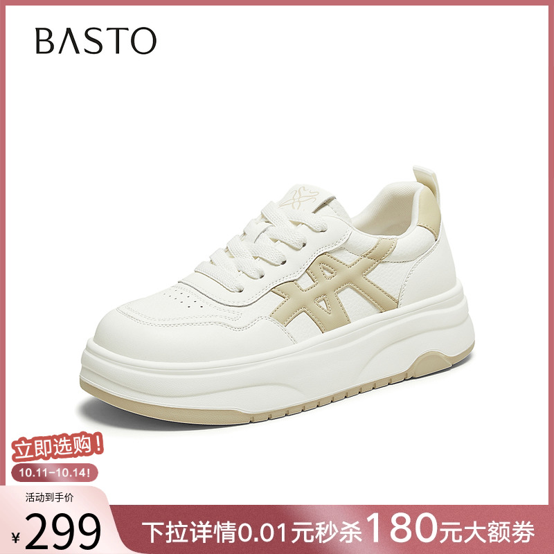 女运动休闲鞋 百思图2025秋季 小白鞋 松糕厚底板鞋 W2025CM5 商场新款