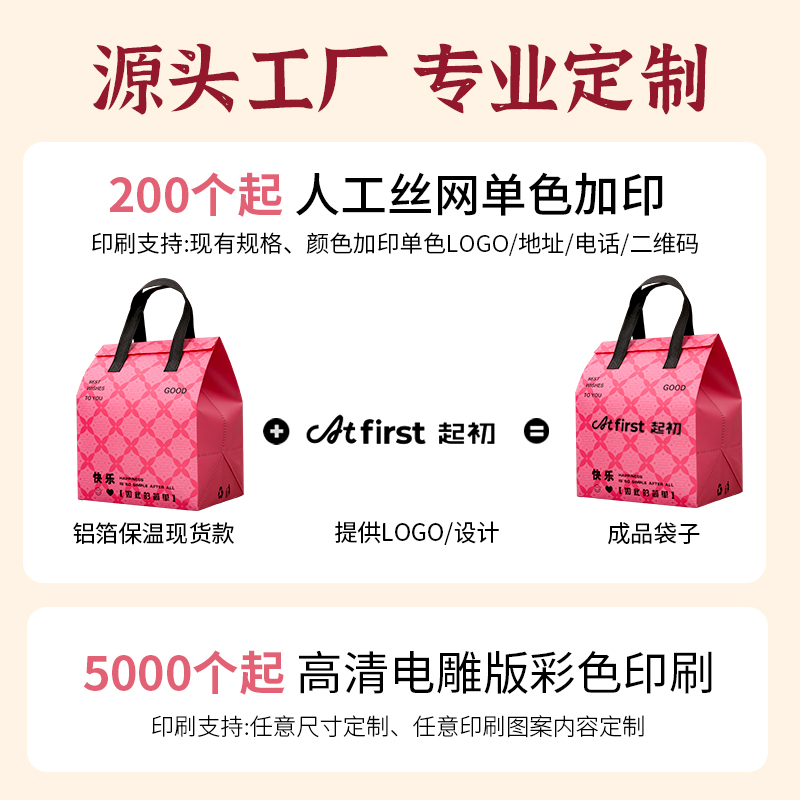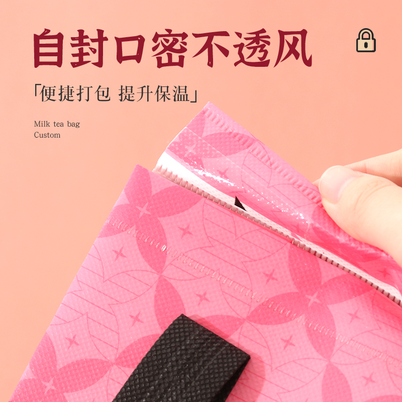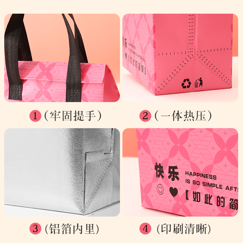 快乐简单 打包袋奶茶饮品咖啡铝箔保温无纺布外卖手提袋定制 粉