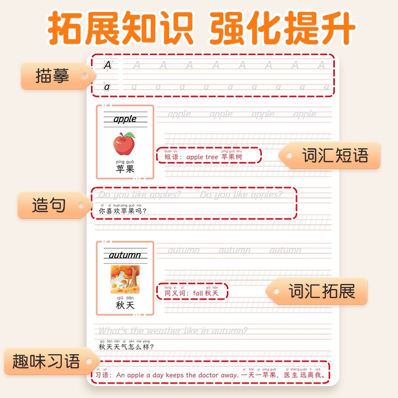 衡水体三年级英语字帖同步练2025新版 小学生英文单词26个字母练字3上小学课本每日一练书写训练练习 四年级五年级六年级上册人教版