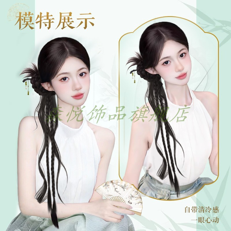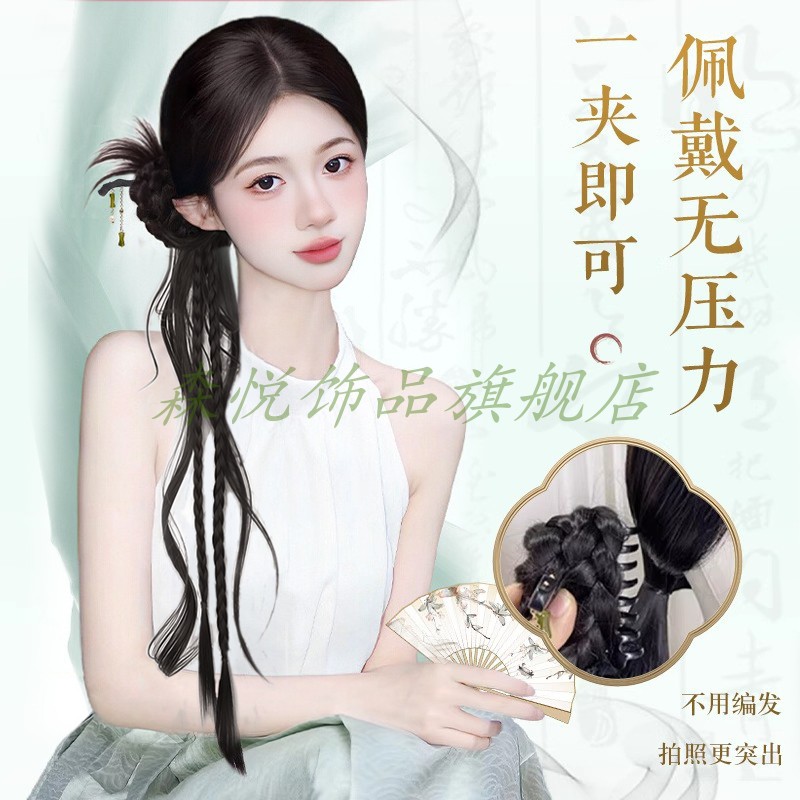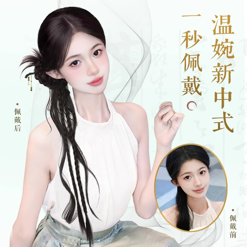 百搭发型 花苞假发辫新中式 新国风中式 假发侧扎辫子夏日旗袍抓夹款